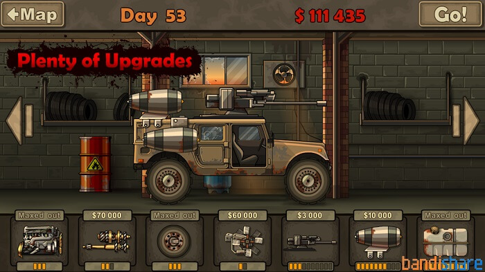 Bạn muốn vượt qua các địa hình, tiêu diệt lũ Zombie hiệu quả cần nâng cấp xe đua. Earn to Die cho bạn bạn gắn thêm vũ khí mới, thêm tên lửa, thay bánh xe, tăng tốc độ để chinh phục nhiệm vụ dễ dàng. Bạn nên vạch ra chiến lược nâng cấp xe thông minh, tối ưu sức mạnh hiệu quả để chiến thắng thử thách dễ dàng. Cải tiến xe chính là chìa khóa giúp bạn lần lượt đi qua các chế độ chơi, hoàn thành các nhiệm vụ hiệu quả nhất.