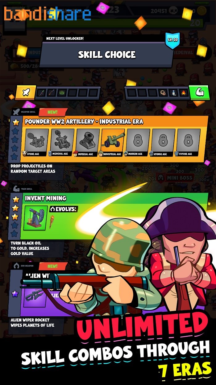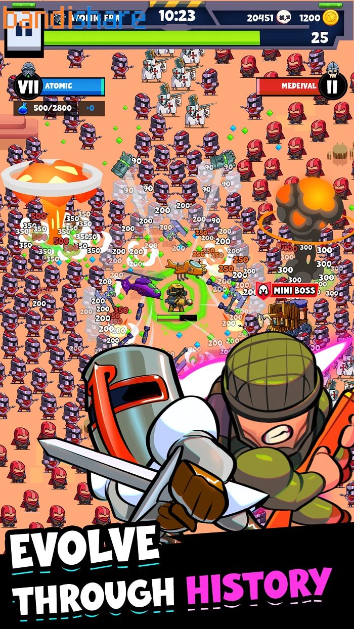 Empires Survivors! là một game chiến thuật sinh tồn cho bạn đi qua các thời kỳ cực hay. Bắt đầu từ thời kỳ đồ đá, cho đến thời kỳ hiện đại, bạn cần dùng chính năng lực của bản thân để xây dựng quân đội mạnh, tạo lập đế chế hùng mạnh đánh bại hàng nghìn kẻ thù xuất hiện cùng lúc. Bạn hãy dẫn dắt nền văn minh của mình phát triển vượt bậc qua từng thời kỳ, chinh phục thành công những thử thách khốc liệt nhất. Bắt đầu nhiệm vụ ngay cùng bản Empires Survivors! MOD (Menu, sát thương, EXP) được Bandishare chia sẻ trong bài viết dưới đây.