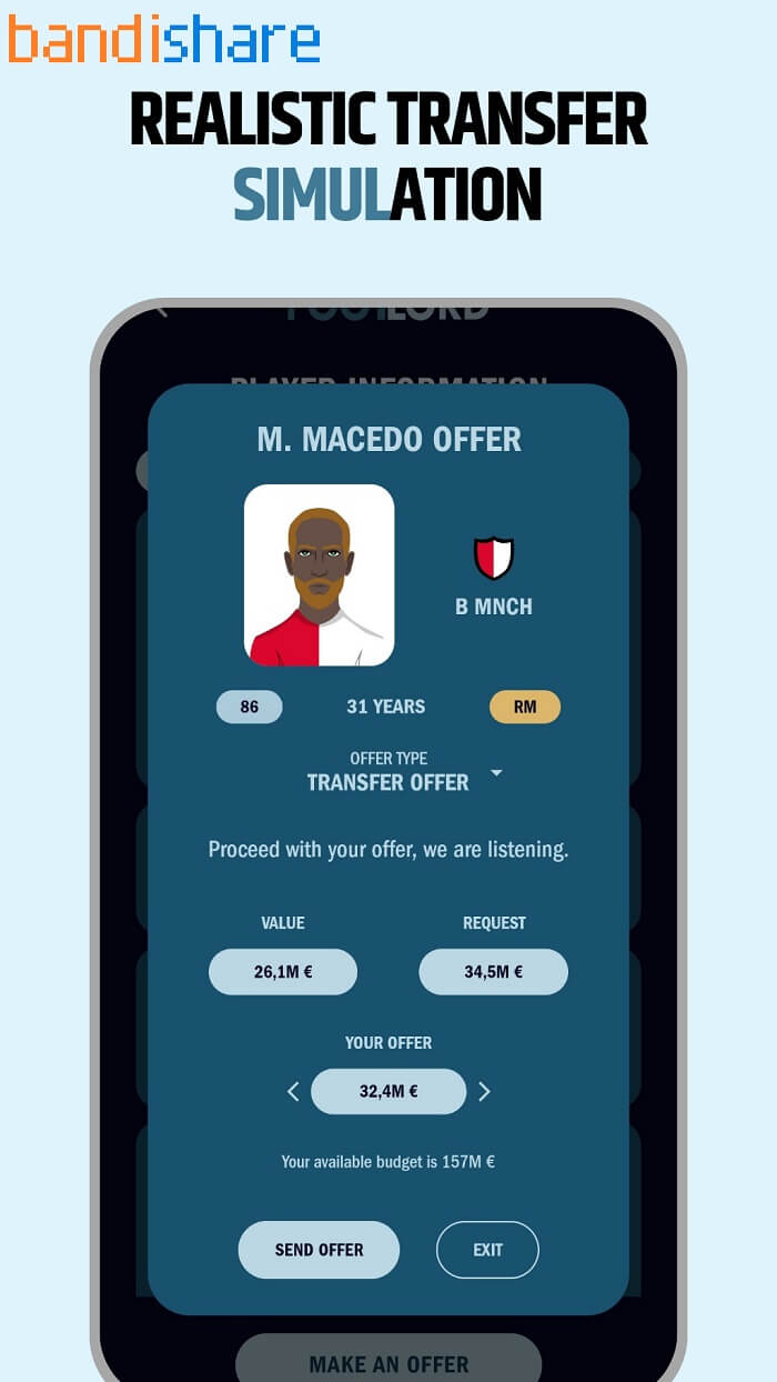 Bandishare chia sẻ bản FootLord – Football Manager v1.18.1 APK với các tính năng MOD sau: