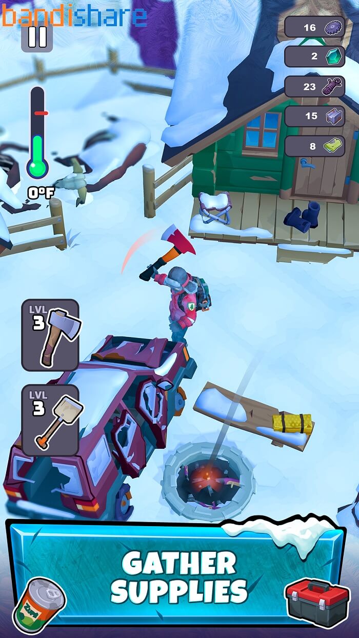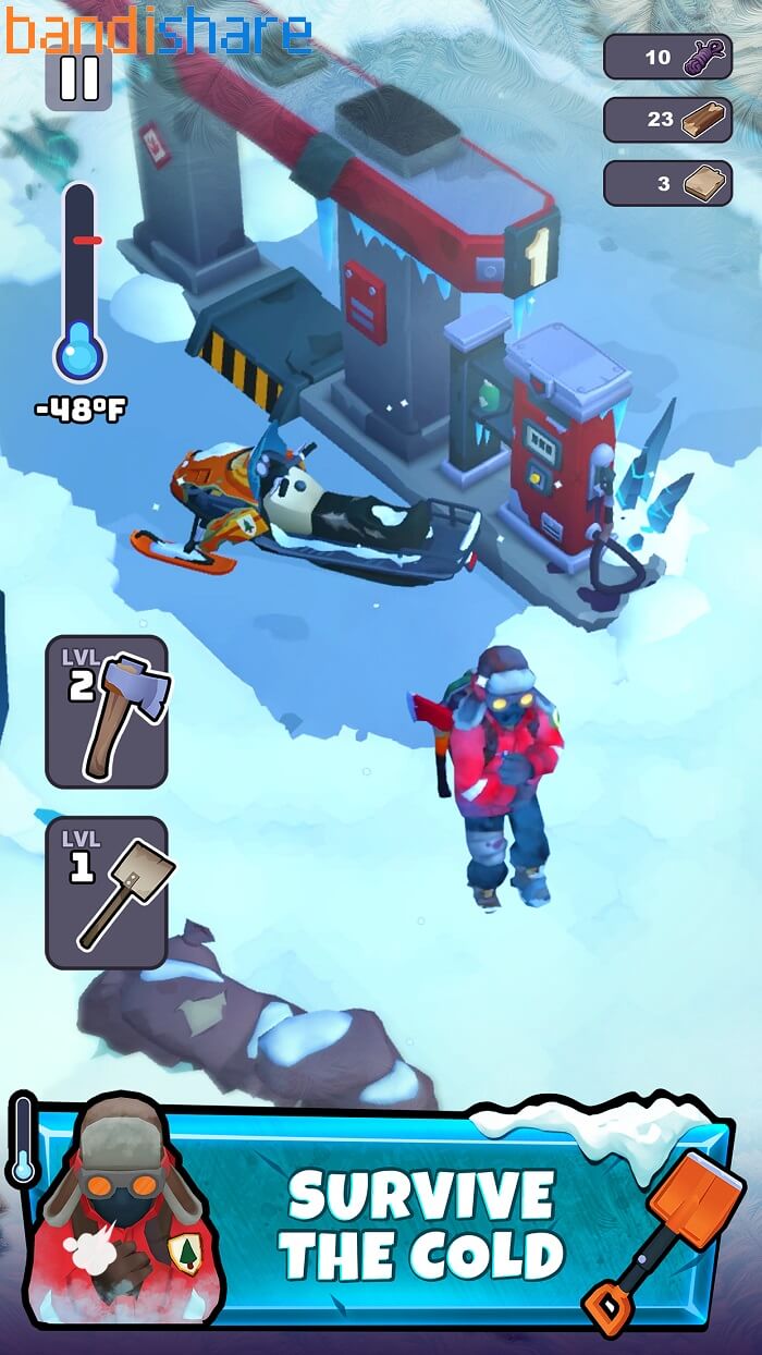Kết luận: Tải ngay game Frost World được Bandishare chia sẻ để tận hưởng cuộc chơi sinh tồn khắc nghiệt nhưng đầy kích thích. Bạn hãy tận dụng lợi thế, kết hợp cùng kỹ năng sinh tồn để quản lý tài nguyên, duy trì sức khỏe, từng bước xây dựng lại cuộc sống, vượt qua mọi khó khăn và nguy hiểm thành công. Chúc các bạn chơi game vui vẻ nhé!