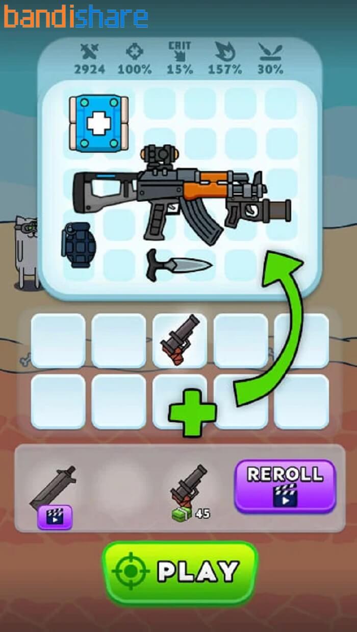 Một cơ chế thú vị bạn sẽ được trải nghiệm khi chơi Gun Hero: Cat Survival Shooter chính là hợp nhất vũ khí để nâng cấp. Bạn sẽ đưa nhiều bộ phận hợp lại thành vũ khí mới với khả năng chiến đấu mạnh mẽ hơn. Khi anh em kết hợp cùng với trang bị chắc chắn sẽ dễ dàng hạ gục mọi kẻ thù, đặc biệt là những con Boss to lớn và mạnh mẽ.
