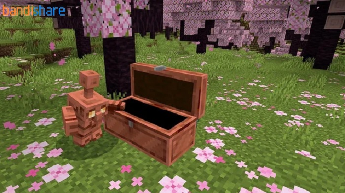 Bạn hãy tạo ra một Copper Golem để làm người hỗ trợ đồng hành trong cuộc chơi. Bạn có thể tạo ra Copper Golem từ một khối đồng với một quả bí ngô khắc. Hình ảnh, kết cấu và chuyển động của Copper Golem được làm mới mang đến trải nghiệm sống động, kích thích thị giác người chơi hơn. Copper Golem có khả năng phân loại vật phẩm trong rương theo từng khu vực. Nó sẽ giúp bạn phân loại cùng lúc đến 16 loại vật phẩm khác nhau vào rương đồng, từ đó giúp anh em tối ưu không gian lưu trữ, không cần phải sắp xếp đồ thủ công nữa.