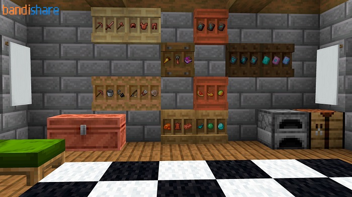 Kệ chính là không gian giúp bạn lưu trữ nhiều vật phẩm và dùng để trang trí theo ý muốn. Bạn có thể tạo ra nhiều kiểu dáng kệ khác nhau để đặt tại các vị trí, lưu trữ những món đồ. Các lỗi liên quan đến hoạt động không chính xác của kệ cũng đã được khắc phục giúp người chơi tương tác với chúng dễ dàng hơn. Bạn cũng có thể tạo ra cả một thư viện rộng lớn, chứa đầy kệ sách trong Minecraft 1.21.121.